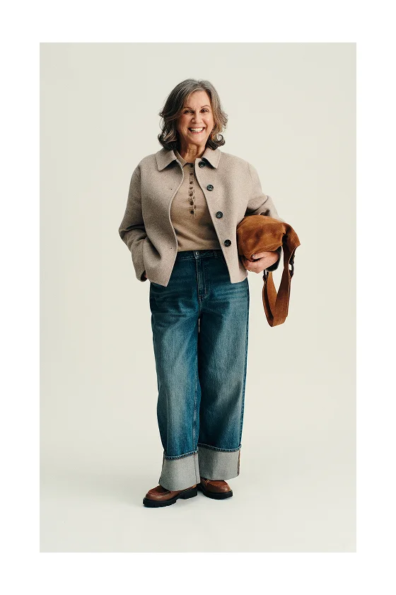 „Ich denke jeden Tag über mein Outfit nach, nicht nur am Wochenende," erklärt Sue. Sie betritt das Set, die Studiobeleuchtung wirft einen warmen Schein. Sie war schon immer an Mode interessiert und Kleidung ist für sie eine Methode, sich gut zu fühlen. Es liegt Freude in der Auswahl ihrer Outfits. Und das heutige Fotoshooting hat ihr Jeans noch nähergebracht.
