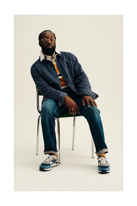 „Ich style meine Jeans danach, welche Art von Sneakern ich trage," erklärt Jordan mit einem Blick auf seine Schuhe. „Also wenn ich etwas klobigere Sneaker trage, bevorzuge ich ein gerades Bein, bei dem man mehr vom Schuh sieht. Aber wenn ich leichtere trage, suche ich wahrscheinlich ein weiteres Bein aus, so dass es den Schuh mehr verschluckt."