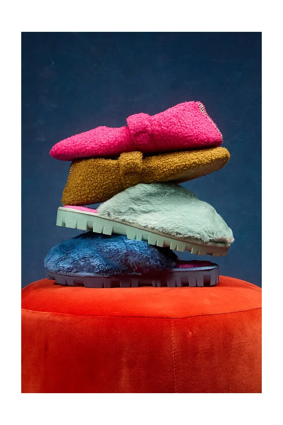 Glänzende (samtige) Jacken. Pelzige Hausschuge und flauschige Strickmode. Kleider, die Kunststückchen können.