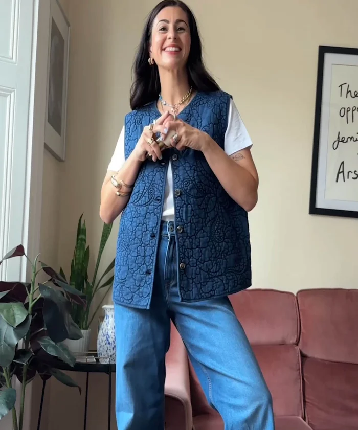Ich mag ein wenig Layering und würde ein T-Shirt, eine Weste oder ein Hemd mit einer schönen Jacke dazu kombinieren. Ich trage normalerweise Sneaker und würde mit etwas Schmuck und einer schönen Tasche einen legeren Look kombinieren, der trotzdem durchdacht wirkt.