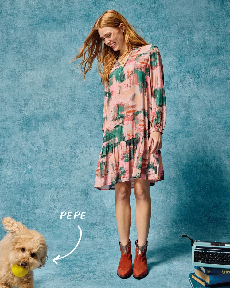 KLEID SYLVIE, 92 € STULPENSTIEFEL AZALEA AUS WILDLEDER, 147 €