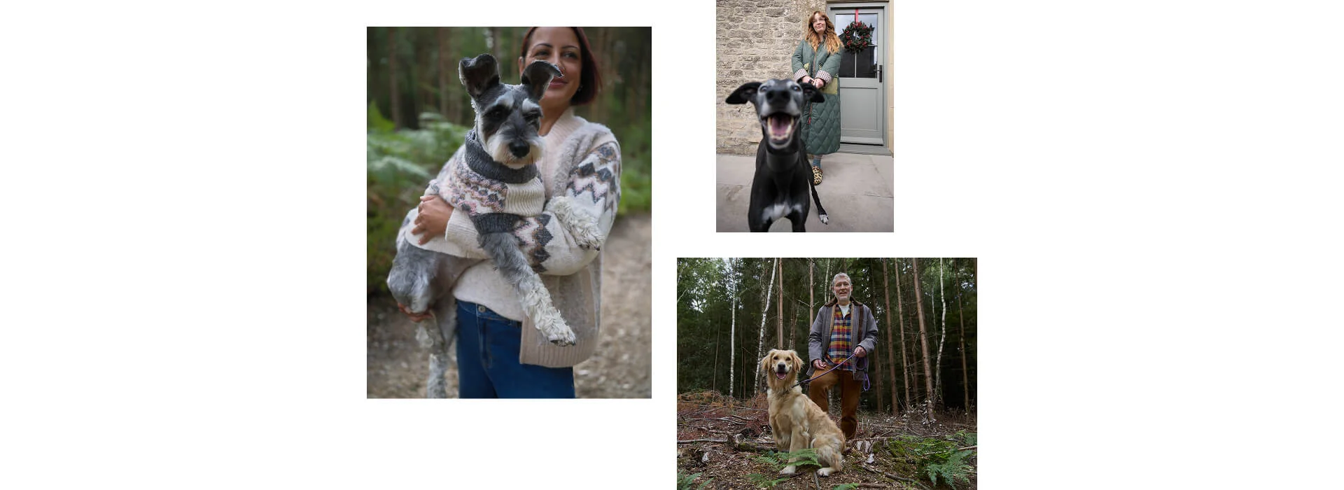 Sie dackeln durch den Schnee. (An einem ganz und gar nicht verschneiten Tag.) Wir sind im Forest of Theale beim Fotoshooting für unsere Weihnachtskampagne. Wedelnde Schwänze, matschige Pfoten und ein Chor aus Gebell. Hört sich nicht nach unserer Gruppe neuer Models an. (Ist es aber.)