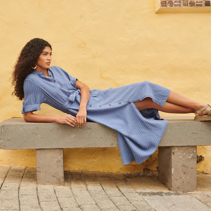 Leinen ist dafür bekannt, dass es gerne knittert. Wir nennen das Edelknitter und finden, es gehört zu seinem Charme. Aber wenn du lieber knitterfreie Kleidung trägst, haben wir einen Tipp: Unsere Designer mischen viele unserer Leinensachen mit knitterresistenter EcoVero Viskose oder leichter Baumwolle. Dadurch werden sie weicher und fließender. Und verknittern weniger. Wenn du also wissen willst, wie man Leinen ohne Knitter trägt, schau dir mal unsere Sachen aus Leinenmischung an.