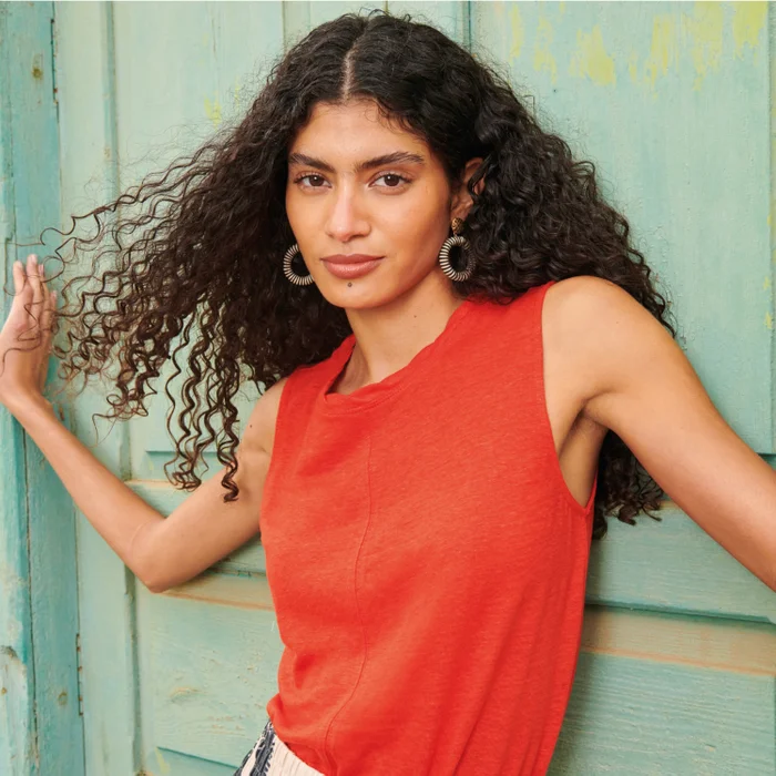 Es gibt so viele verschiedene Arten, Leinentops zu tragen. Zum Beispiel sehen deine Jeans mit einen Leinen-T-Shirt viel besser aus. Und eine fließende Palazzohose passt toll zu einen Leinentunika. Leinenblusen passen sowieso zu allem. Und dieses farbenfrohe Trägertop aus Leinen gehört zu unseren Favoriten. Es hat einen interessanten Ausschnitt und eine bequeme Passform. Und sieht einfach toll aus zu bedruckten Hosen oder Röcken.